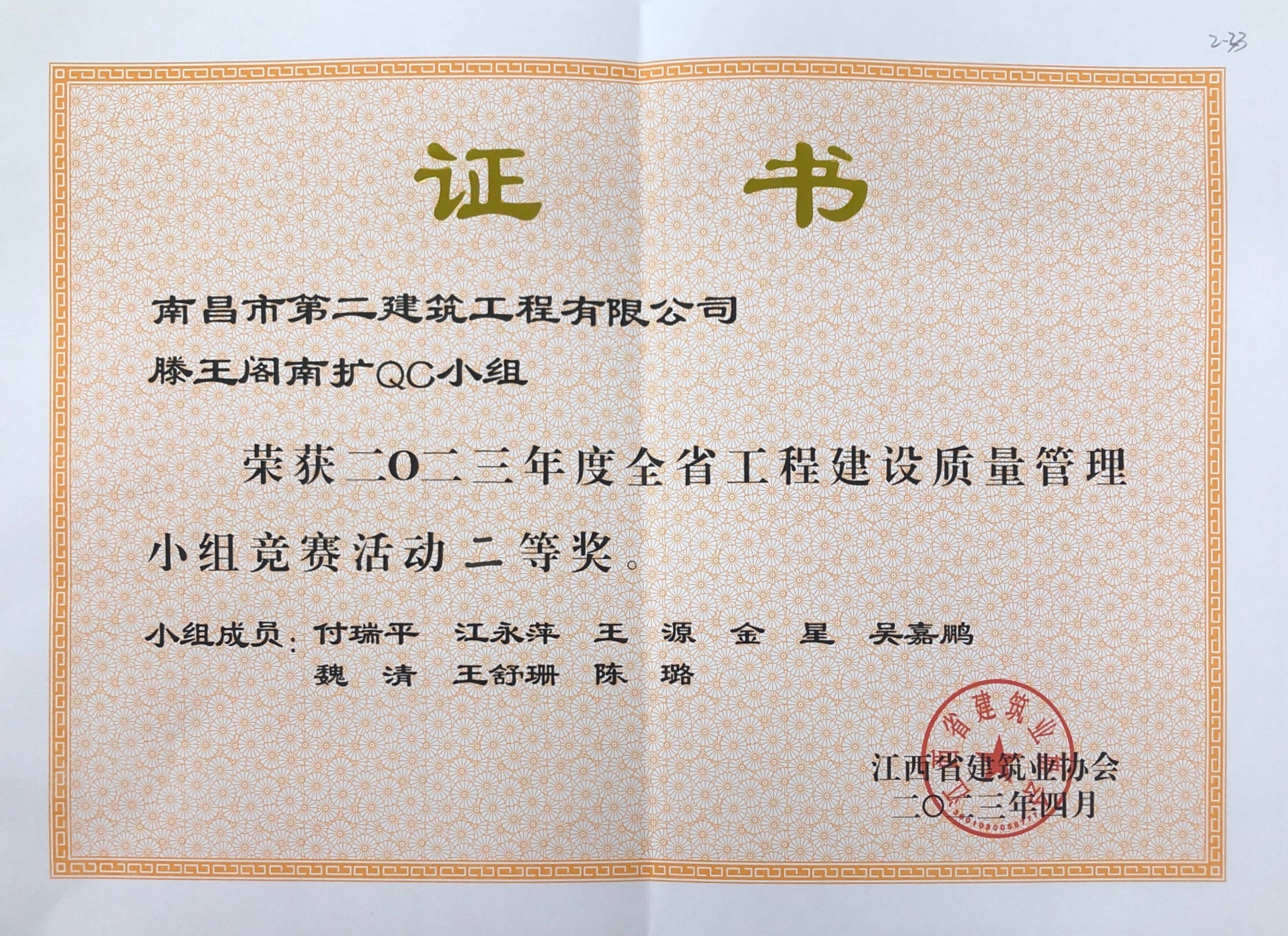 公司QC活動成果榮獲2023年江西省工程建設(shè)質(zhì)量管理小組競賽活動二等獎