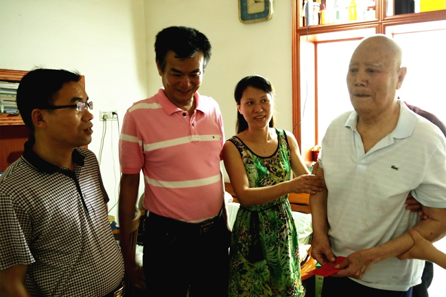 【概要描述】 “七一”建黨節(jié),公司黨委委員、紀檢書記兼工會主席王小華(左一)一行,代表公司黨委對公司離退休原領導干部進行走訪,并送上慰問金,...