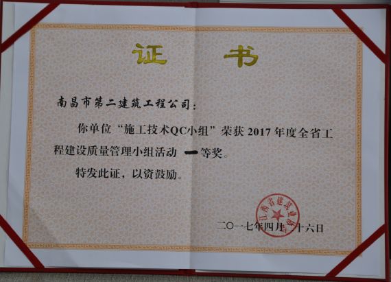 QC成果獲獎(jiǎng)證書